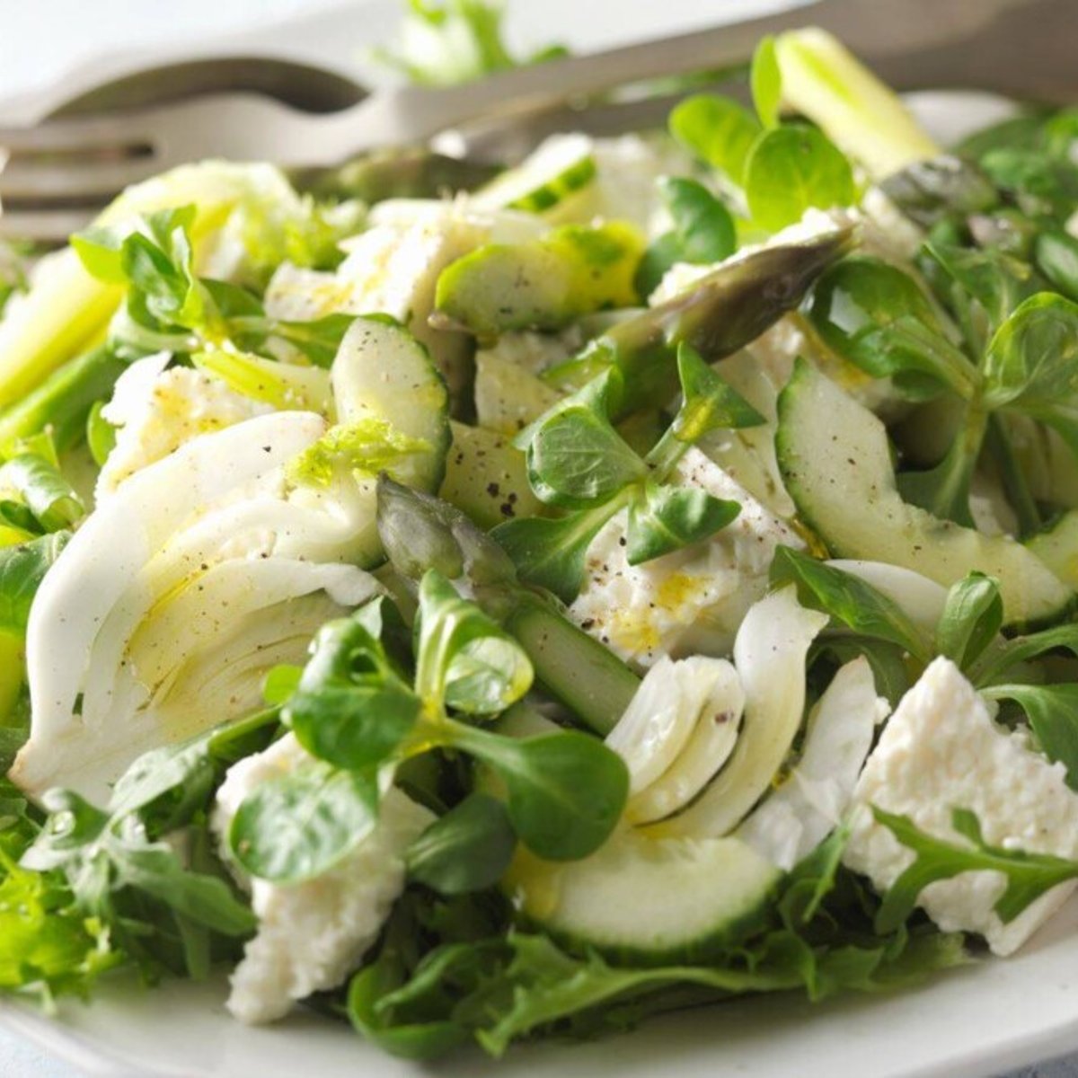 Krispig vårsallad med sparris och fänkål