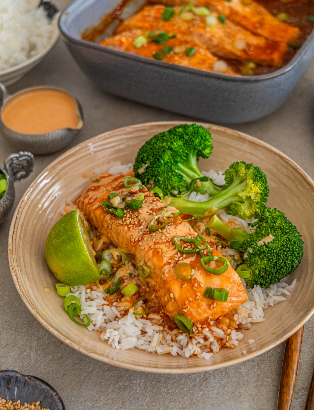 Crispy BBQ Salmon Tacos with Avocado Mango Salsa and Jalapeño Cream