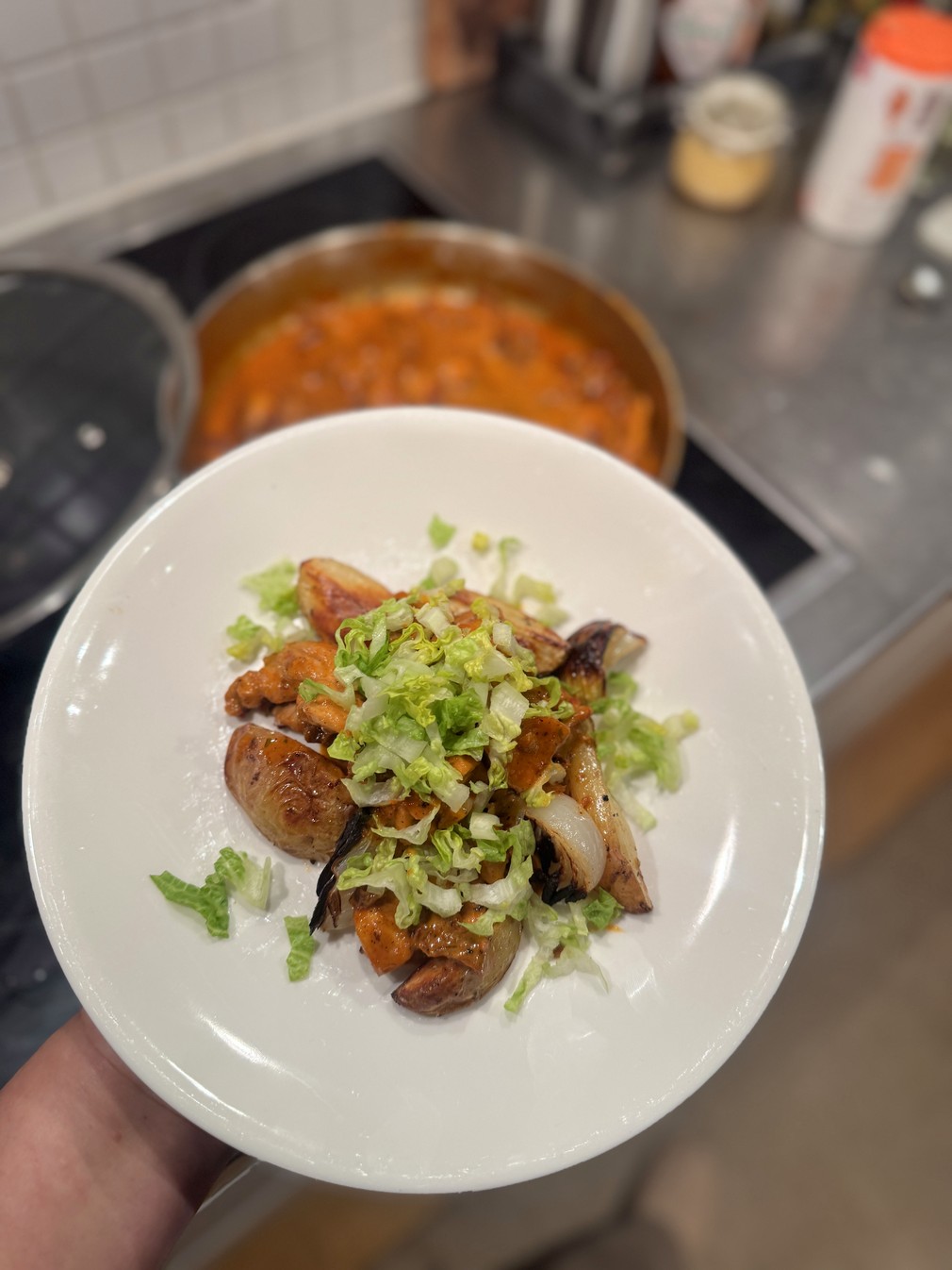 Ugnsbakad kycklingklubba med potatis, lök, morot och citron