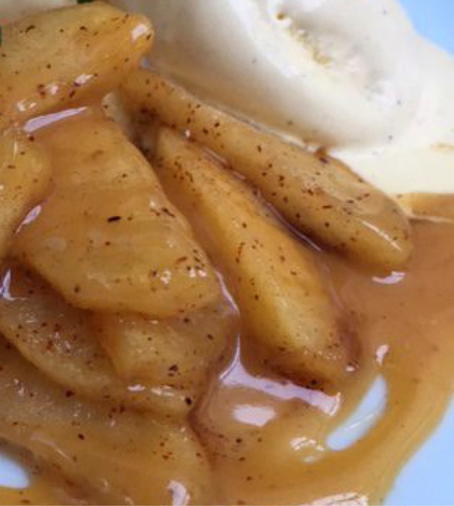 Kolastekta kaneläpplen med vaniljglass