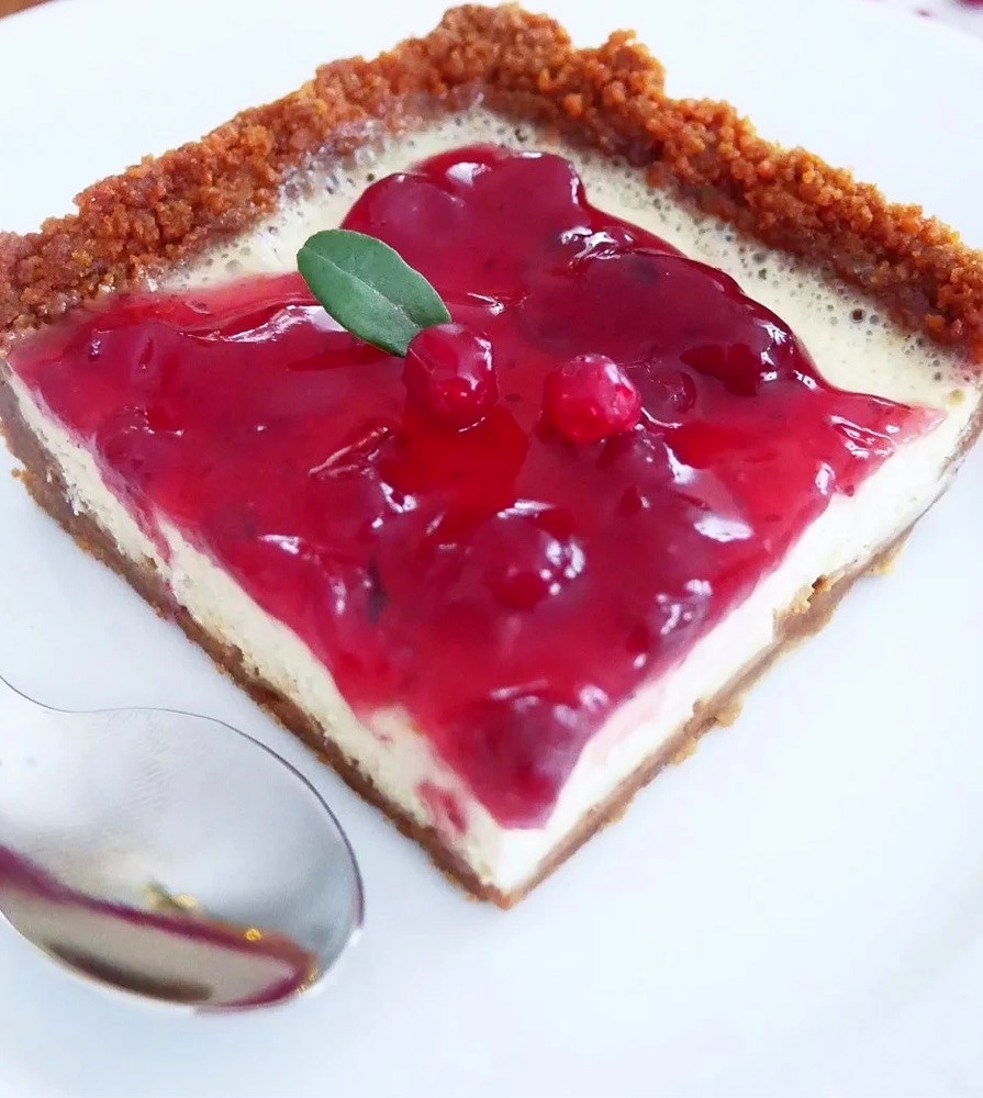 Cheesecake med lingon och pepparkaka