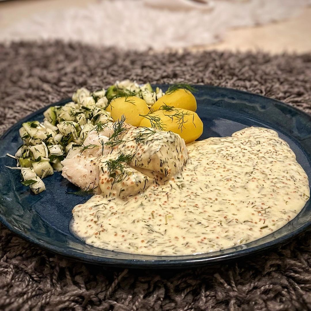 Kvรคllens middag blev riktigt god. Torskryggen rimmades i generรถst med salt i ungefรคr 60 minuter innan den torkades av och bakades i ugnen pรฅ 150 grader i ca 20 minuter. Tillbehรถren med sรฅsen och salladen mรฅste ni bara prova. Det godaste jag gjort pรฅ lรคnge๐คฉ๐